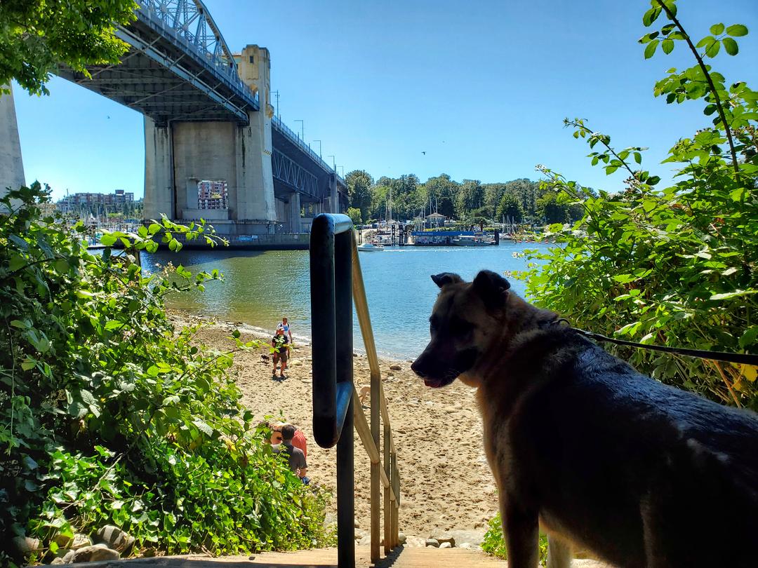 The Aqua Bus has a stop at Sunset Beach and they are dog-friendly so you can hop on and take a boat ride over.