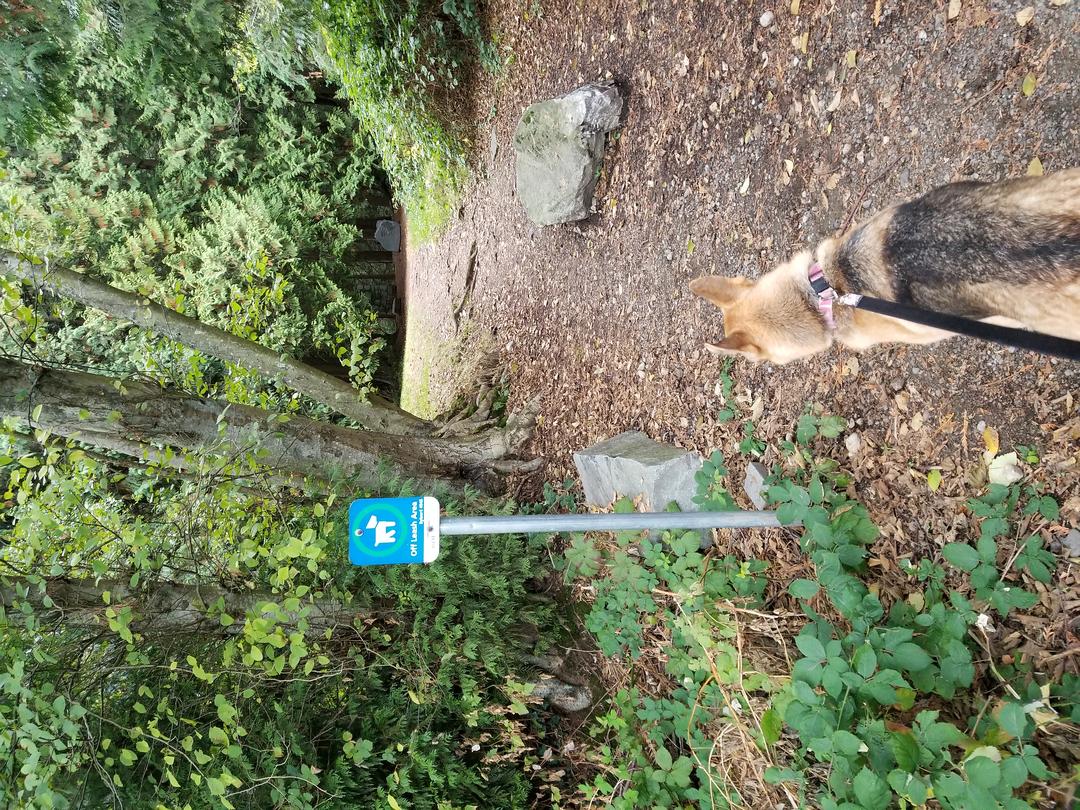 The trails themselves are not very long (don’t go in expecting a hike!) but long enough for your dog to get some exercise. If you would prefer to go to an off-leash park where you can hike as well, check out nearby Lighthouse Park!